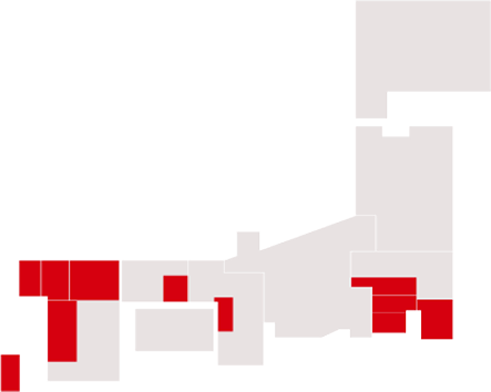| 佐賀 | 福岡 | 長崎 | 熊本 | 沖縄 | 岡山 | 大阪 | 東京 | 神奈川 | 千葉 | 埼玉 | |