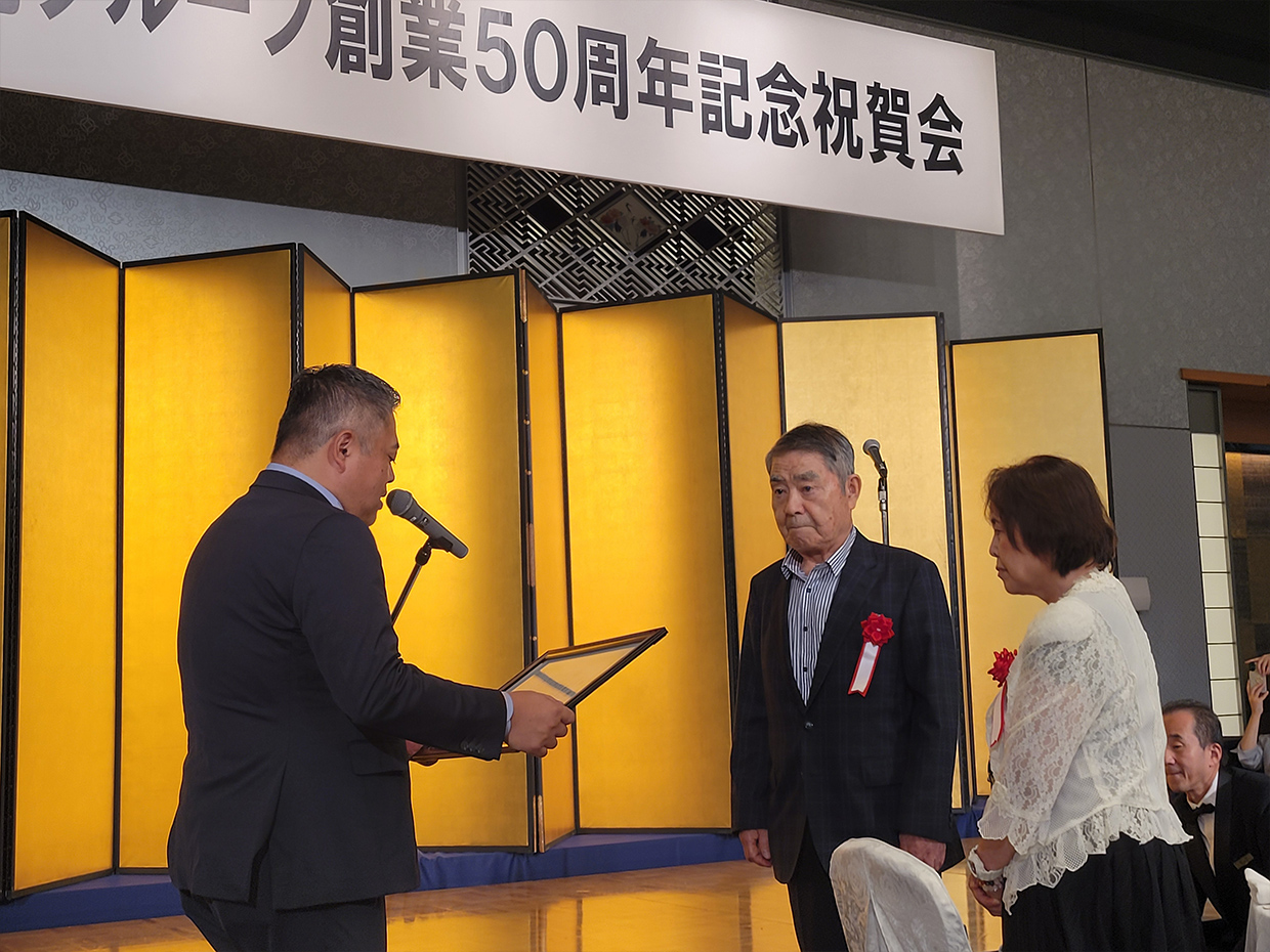 祝賀会では50年間の歩みを振り返るとともに、各グループの部署の紹介や余興、抽選会など大いに盛り上がり、参加者一同、笑顔と感動に包まれるひとときとなりました。