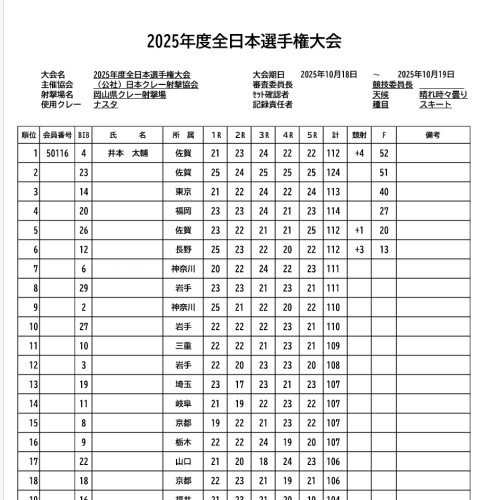 10/18~19に岡山県で行われたクレー射撃(スキート種目)「2025年度全日本選手権大会」において、工務部工務課に所属している井本太輔さんが優勝され、見事日本一になられました。